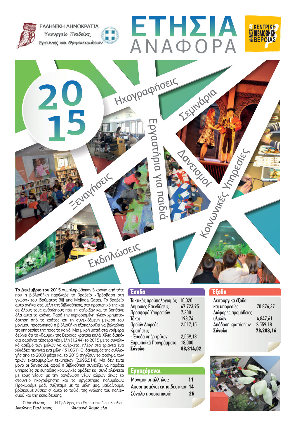 Με μεγάλη χαρά σας παρουσιάζουμε την ετήσια αναφορά πεπραγμένων της Δημόσιας Βιβλιοθήκης της Βέροιας για το 2023.