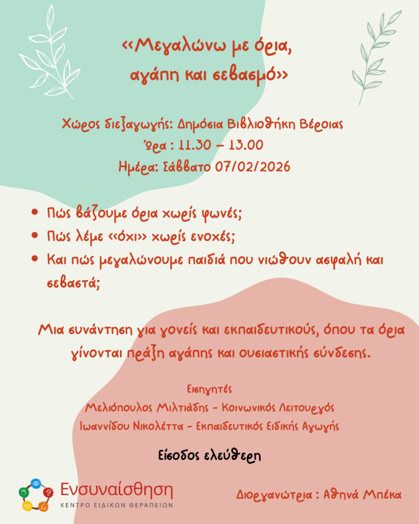 Μια συνάντηση για γονείς και εκπαιδευτικούς που θέλουν να μεγαλώνουν παιδιά με αγάπη, σαφή πλαίσια και ουσιαστική σύνδεση.